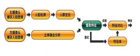 汉王人脸识别设备中左摄像头捕获人脸图像,进行立体融合分析,专用右摄像头捕获到含有人脸的图像后,对人脸进行脸部的一系列相关比对技术,包括人脸检测、人眼定位、人脸特征预处理、记忆存储和比对辨识,达到识别不同人身份的目的。人脸识别系统就是把人脸识别和考勤门禁系统结合,并且通过人脸识别进行考勤门禁管理。