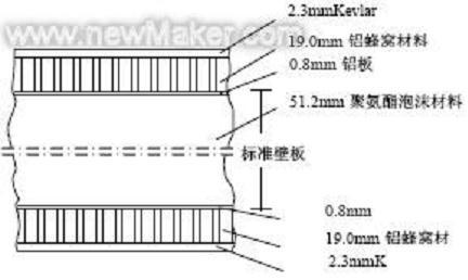 图19 用Kevlar 材料加固的车厢壁板截面图