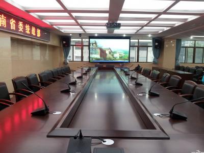 赢康科技公司为湖南省省委安装了dnp WinFlex 120寸光学电动正投幕,在会议室灯光全部开启的明亮环境下,依然获得了色彩明艳、细腻饱和的清晰影像。