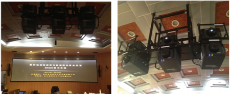 针对用户2D/3D无缝切换的需求,赢康为该项目特别设计了上下两层可左右滑动的投影机安装吊架,并为投影机安装了电动滑轨式移动的偏正片。