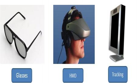 此一方式便是直接在眼镜上分别做两个荧幕直接分别给左右眼观赏,所以只要分别给两边不同的讯号即可。但缺点便是只能单一观众观赏,并且眼镜不管是在造价和重量上都属最贵重的。