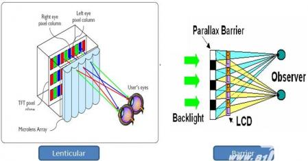 以上这几种无论成本高低都需要配戴眼镜,但在一般的使用者方面多少都会造成不便的感觉,因此在近几年的技术上均着重于开发不需戴眼镜的裸眼式的3D显示系统。