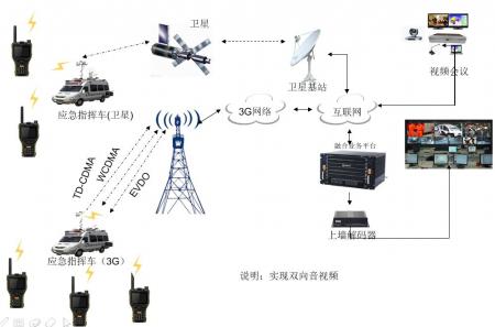 ▪ 应急指挥车通卫星车载基站/3G车载基站接入到一级应急指挥中心;