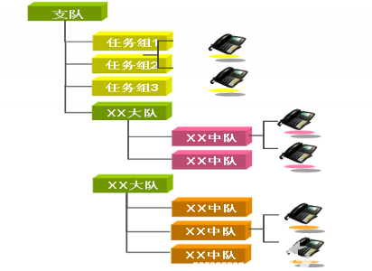 二级大队指挥中心办公区可集中部署视频话机与IP电话。