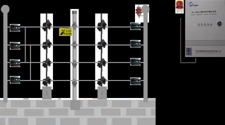 电子围栏系统由脉冲电子围栏主机和前端探测围栏组成,电子围栏前端安装在被保护区域院墙的顶部,脉冲电子围栏主机安装在围墙的侧面。脉冲电子围栏主机将高压脉冲传输到前端探测围栏上,形成一堵电子围墙。脉冲电子围栏系统是防盗报警的第一道防线,当有人非法翻越围墙或破坏前端围栏时,脉冲电子围栏主机可立即将警情传送到管理中心,管理中心对报警信号进行接收和处理,识别出入侵位置,并开启声光报警器,提醒附近人员警觉;如果与监控系统联动,监控屏幕上可立即跳出入侵区域的现场实时画面,工作人员能迅速通知巡逻中的保安人员立刻赶往现场处理。