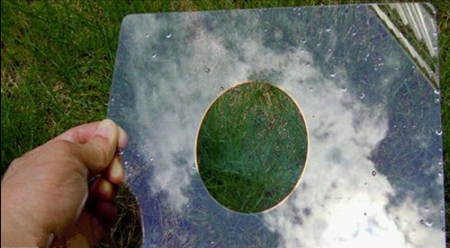 据康宁在MIT移动技术峰会上提供的展示图显示,在一块普通屏幕玻璃的中间位置上有一个类似被掏空的“洞”,实际上在这片区域,康宁使用了新的抗反射技术,使得玻璃在室外也能获得很好的额视觉效果。