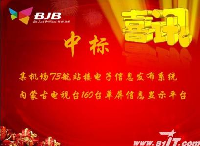 2013年8月7日,初秋之际,同辉佳视再次从用户端接到喜讯,赢得某机场T3航站楼电子信息发布系统集成项目,该项目作为同辉佳视在云南某机场的大型电子显示系统的又一经典案例。共用55寸LED背光显示器180余台,单屏70寸广告机60余台;而在同一时期内,同辉佳视在其长时间保持良好发展势头的广电行业,再赢惊喜,其在内蒙古某电视台推广的单屏显示器成功中标,共用160余台NEC 55寸单屏显示器;8月之初,同辉佳视的双响炮接连放响,无疑是给同辉佳视在行业开发和推广上打了一剂强心剂,也为同辉下半年在行业渗透和推广建立了良好的开端。