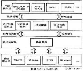 作为连接感知层与网络层的纽带,物联网网关可以实现感知网络与通信网络,以及不同类型感知网络之间的协议转换.既可以实现广域互联.也可以实现局域互联。在无线传感网中,物联网网关是不可或缺的核心设备。此外物联网网关还需要具备设备管理功能,运营商通过物联网网关设备可以管理底层的各感知节点,了解各节点的相关信息,并实现远程控制。