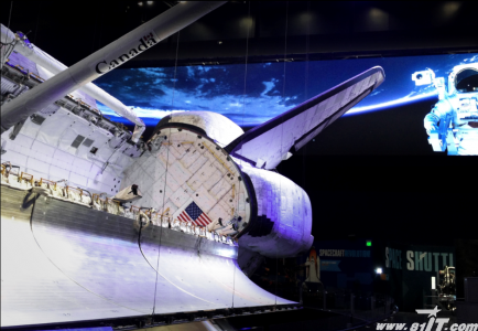 台达LED显示屏为亚特兰蒂斯号提供壮丽的展览背景,呈现航天飞机环绕地球时的模拟景象,带给观众深刻的视觉震撼。台达此次使用超过800个I-8 LED显示单元,组成20英呎高、110英呎宽、像素间距8毫米的室内显示大屏,总像素超过300万,并拥有完美的色彩均匀度及对比度。此外,显示屏宽广的可视角度也能确保游客在不同位置都能拥有最好的视觉体验。