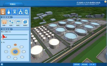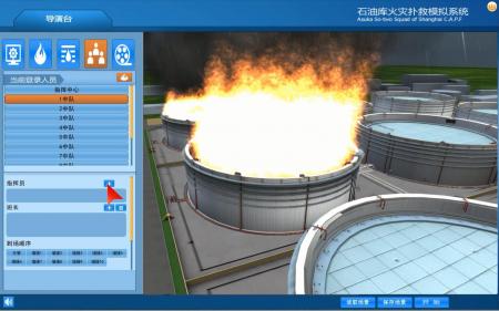 石油库火灾扑救模拟训练系统依托现代灭火救援指挥理论,借助虚拟现实、网络与数据库技术,将三维虚拟仿真技术与灭火救援模拟训练教学业务相结合,实现了对石油库火灾扑救过程中多用户多角色指挥关系与指挥流程的模拟,满足了石油库火灾扑救培训过程中的协同联动、统一指挥、统一行动等要求,确保学员能深刻认识在石油库火灾扑救过程中不同岗位的不同职责和任务。此外,充分利用三维视景仿真技术,系统真实模拟了石油库火灾扑救过程中的多种险情发生、发展及灭火救援行动过程,有效解决了传统消防指挥训练过程中因场地、环境、安全性、经济性等条件的限制,而造成的训练机会不多、训练力度不大、训练效果不佳、训练过程不易控制、训练成果考评困难、训练成本较高、容易发生危险等一系列的问题。