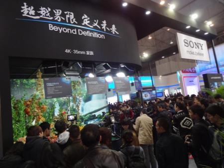 - 在拍摄区域,4K及35mm家族汇聚于此,PMW-F55/F5 4K数字电影摄影机、NEX-FS700 4K Super35mm全画幅摄录一体机、PXW-Z100 4K手持摄录一体机、NEX-EA50可变肩扛式大画幅摄录一体机各显身手;XDCAM家族的PDW-680高清专业光盘摄录一体机、PMW-580肩扛式存储卡摄录一体机和PMW-EX280手持式存储卡摄录一体机吸引了新闻工作者反复对比;NXCAM系列的HXR-NX5C手持式存储卡高清摄录一体机也一并亮相。阵容强大,适应于各种需求。