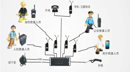 在地下室、隧道等超短波通信盲区内,可利用150米卷轴线缆(最长可达1500米)引入到盲区内,通过卷轴线缆上连接的对讲机实现无线信号盲区内的全覆盖,使处于地下室或隧道内的救援人员与外界人员保持通信畅通。
