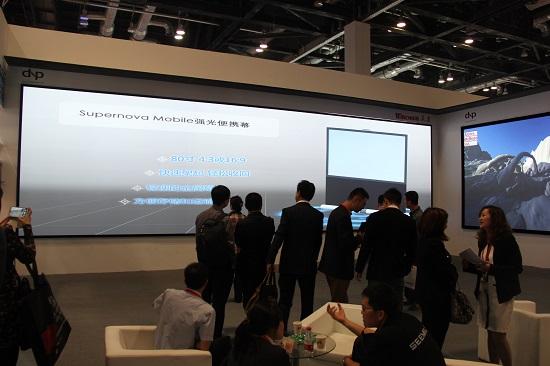 在今年InfoComm,dnp展台此次展示的亮点在于由8块(2*4)dnp Supernova Infinity强光无限拼接单元组成的巨型屏幕,此系统可以按照需求定制任意尺寸的大屏幕,打造高分辨率、高对比度的显示系统,非常适合指挥调度、智能会议等众多领域。