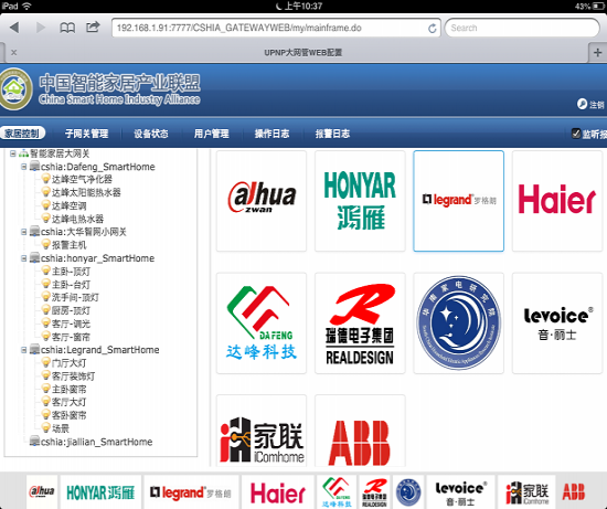 总网关根据子网关设备服务描述,调用服务接口,实现灯光、窗帘、空调、热水器、空气净化器、背景音乐等设备的控制。