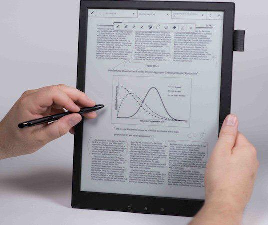 Digital Paper是索尼新近推出的一款全新13.3英寸显示屏的Digital Paper电子墨水屏装置。重量只有357克、厚度为6.8毫米、分辨率为1600×1200、具有16级灰度调整屏幕、支持触控、可手写输入的无背光设备,为白天阅读无需滚屏或者放大的文件提供方便。Digital Paper既配备了光学式触控技术,也有感应式触控输入技术,也就是说它除了阅读以外还可以作笔记、标记、备注等。索尼称通过AC或者USB充电续航时间可达三周,文件可通过Wi-Fi保存于4GB内置存储或SD卡上。
