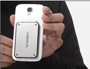 LithiumCard采用了超薄机身设计,机身尺寸仅为53.9 x 85.6 x 5.5mm,基本上与一张信用卡大小相仿。另外,机身表面的金属面板支持更换,拥有多种不同材质,还提供了激光刻字服务。显然,它比大部分移动电源都要轻薄,但遗憾的是容量不大,仅为1200mAh,基本上只能作为应急电池使用。那么,为什么它还能受到极大的欢迎呢?秘密就在于它的背部设计。LithiumCard机身背面,使用了NanoStik粘贴技术,可以固定在光滑的表面,也就是说贴在手机背面完全不成问题,同时不会产生任何粘着物,还是十分方便的。