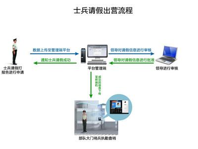 主要用于管理营区内部人员的日常进出,即允许进出的人员才能成功识别并通过门锁控制开门进出。例如:士兵请假审批通过后方能进出大门,请假逾期返回时的监控能报警提示。