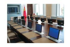 液晶显示升降系统主要用在公安局中心会议室内,为每一位提供一台17英寸液晶显示屏,当开会需要使用显示屏时,隐藏在会议桌内部的升降机,把显示屏从会议桌下面升到桌子表面;当不用显示屏时,升降机自动下降,显示屏隐藏在会议桌内部,保持桌子表面的平整和美观。并配套隐藏式插座。