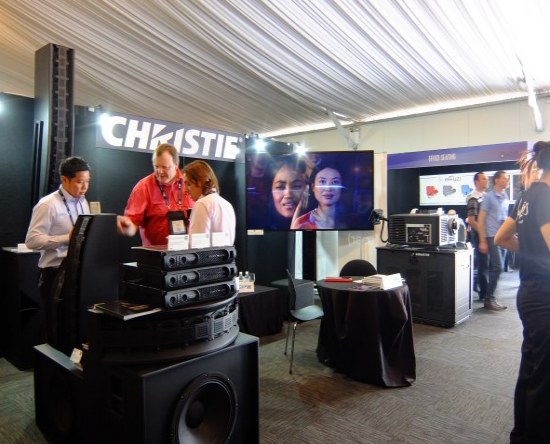 科视Christie将在32号展位展示最先进的电影和音频解决方案,包括科视Christie Solaria One+数字电影放映机和提供丰富、动感而又细腻的环绕音响的科视Christie Vive Audio™音频解决方案。参展的有各种不同组合的科视Christie Vive Audio扬声器,包括LA1和LA3屏幕声道扬声器、S215和S115重低音扬声器、LA3S壁挂式环绕声、LA3C吊顶式环绕声和D级功率放大器。此外,科视Christie QuadHD84 LCD平板具有全高清分辨率(3840 x 2160)和真正的60Hz刷新率,用于展示各种各样的内容,包括布里斯班新农场影院的一段视频。新农场影院是澳大利亚首家安装科视Christie Vive Audio的影院。
