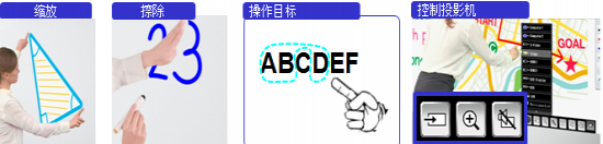 爱普生CB-1430Wi手指触控可替代互动笔的所有功能。其工作原理是当用户的手指触摸屏幕时,首先会反到射红外光幕,之后投影机将检测的信息反馈给电脑。用户通过手指触控可在白板上对文件进行移动、缩放目标或进行注释,还可以实现多人多手指同时触控。整个手指互动过程无需借助任何辅助工具,即开即用、一点就通。