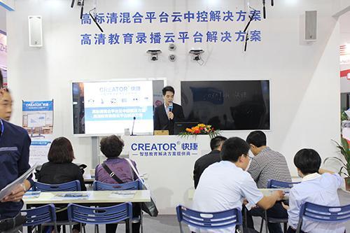 针对本次展会CREATOR快捷展出的系列智慧教育解决方案中的高清教育录播云平台解决方案尤为引人注意,不少到场参观的来宾都对该解决方案兴趣浓厚。该录播服务系统是CREATOR快捷自主研发的一套集视频直播、实时导播、同步录制、在线点播、远程交互等功能的一体化多媒体录播服务系统。系统内置全高清图像处理芯片,并采用自主研发的视频处理技术,自如应对多路高清视频信号并发处理。B/S架构设计,轻松实现远程实时导播。