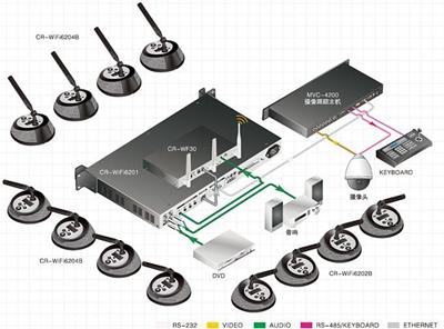 5G WiFi全数字无线会议系统是CREATOR快捷于2012年面向全球推出的国内首创WiFi全数字无线会议系统,该会议系统最大的优势在于采用了干扰少、信道多的5G WiFi频道。由于WiFi信号无方向性传输、不受障碍物阻挡、传输距离远等特性,在整体方案的设计上,根据会场的实际使用面积,只需配置一台无线接入点CR-WF30就可完成整个会场信号的覆盖。会议主机CR-WiFi6201内置自动摄像跟踪控制功能,配合摄像跟踪混合主机CR-MVC4200、高清视频会议摄像机CR-V1013,可进行全程自动跟踪拍摄,高度符合广东省农业厅现代高科技会议要求。