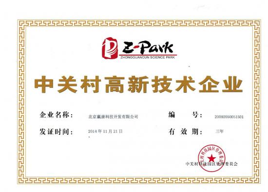近日,赢康科技被认定为“中关村高新技术企业”。中关村是“一区十六园”的概念,包括赢康科技总部所在的北京经济技术开发区,是我国最具影响力的科技创新中心。该认定的范围为“一区十六园”的高新技术企业,一般针对国家级高新技术企业。赢康科技自2009年至今一直被评定为“北京市高新技术企业”。