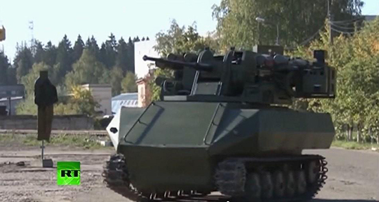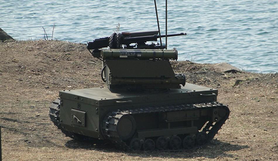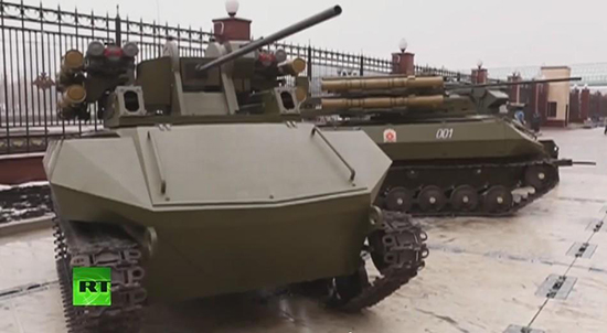 资料图:早前俄罗斯展示的使用战斗机器人执行核潜艇基地巡逻任务的照片。