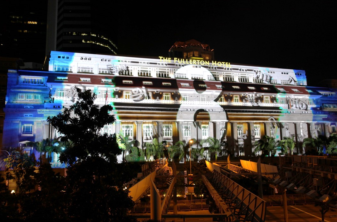 Hexogon Solution团队在进行筹备时必须克服许多挑战才能呈现最佳画面。Goh注意到,浮尔顿酒店是旧殖民时期的建筑,其复杂的建筑结构有利于呈现良好的映射和过渡效果,但多景深会导致图像失真。