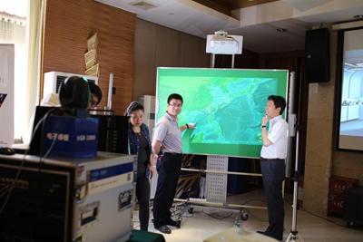 虚拟演播室TVS系列是洋铭科技近年来重点推出的产品。操作简单并且有强大的网络平台支持,是我们虚拟产品不同于其他产品的地方。现场将TVS-1000的输出效果、操作界面均投至大屏幕,并现场演示简单实用的场景制作,给大家带来耳目一新的感觉。同时也特别感谢爱普生投影仪授权技术服务中心陕西乾丰电子科技有限公司提供的超短焦投影仪;南光摄影器材有限公司提供的虚拟演播室灯光;石利洛(上海)贸易有限公司北京分公司提供的阿童木屏幕;松下电器(中国)有限公司提供的摄像机。
