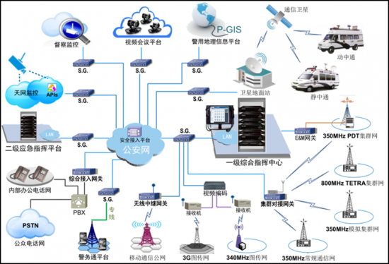 捷思锐公安一体化综合指挥平台基于融合通信、多媒体处理、无线网络媒体传输、NGN网络架构等多种技术开发,可按照部、省、市三级体系部署,满足多层级、多点协同指挥调度需求;横向整合有线、无线、卫星、视频会议、短波、数字集群等通信手段,集成接入PGIS、视频监控、卫星定位、云搜索等信息系统,从而实现跨网络,跨通信体制,跨业务系统的一体化资源调度、扁平化协同指挥、可视化多媒体信息掌控的综合一体化通信指挥。