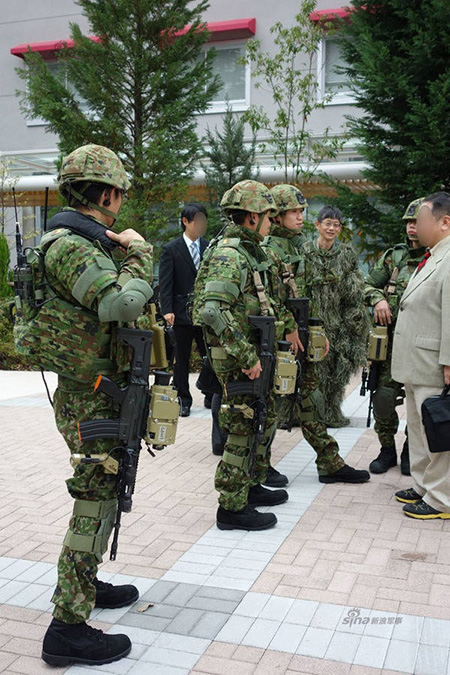 近日,日本军工企业推出了新型的数字化士兵系统,该系统由战术背心、新型信息化步枪、观察测距仪、头盔显示器、平板电脑等部分构成,虽然并未公布关于该武器系统的详细数据,但从外观上看显得比较“高大上”。新型步枪以89式为基础,缩短枪管、改进枪托,还加装了一个巨大的瞄具。