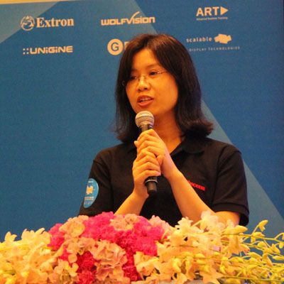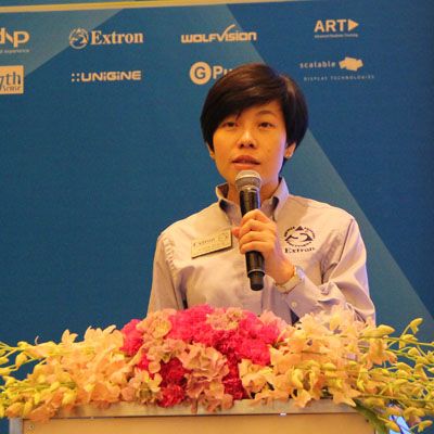 Extron区域销售经理郑绮霞女士简单的介绍了爱思创的发展,同时介绍了现代会议室的音视频系统设计要点及产品推介。