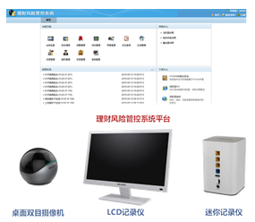 该解决方案中的系统由主要由理财专用设备:桌面双目摄像机、LCD记录仪、迷你记录仪、理财风险管控系统等组成,具有如下特点优势: