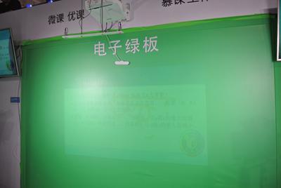 现在我们看到的是洋铭的新产品电子绿板,利用它能很容易做出广电级高质量的教学节目,从摄像到录像,从手写感应笔到监看,从抠像到流媒体编码直播,只需要一套设备就能搞定,性价比较高。