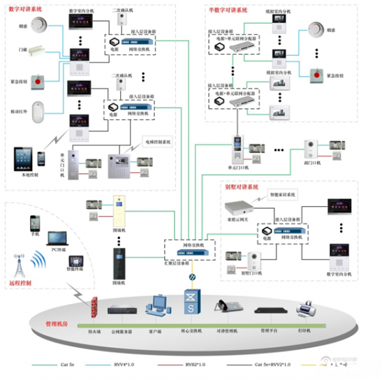 该系统的组网形式比较灵活,适用于学校、酒店、医院、银行、高档小区、写字楼、工业、博物馆等不同物业类型,对于是组成全数字对讲系统还是半数字半模拟对讲系统,用户可根据实际自行抉择。针对用户的需求和不同的物业类型,大华都能提供系统的、全方位的可视对讲整体解决方案。