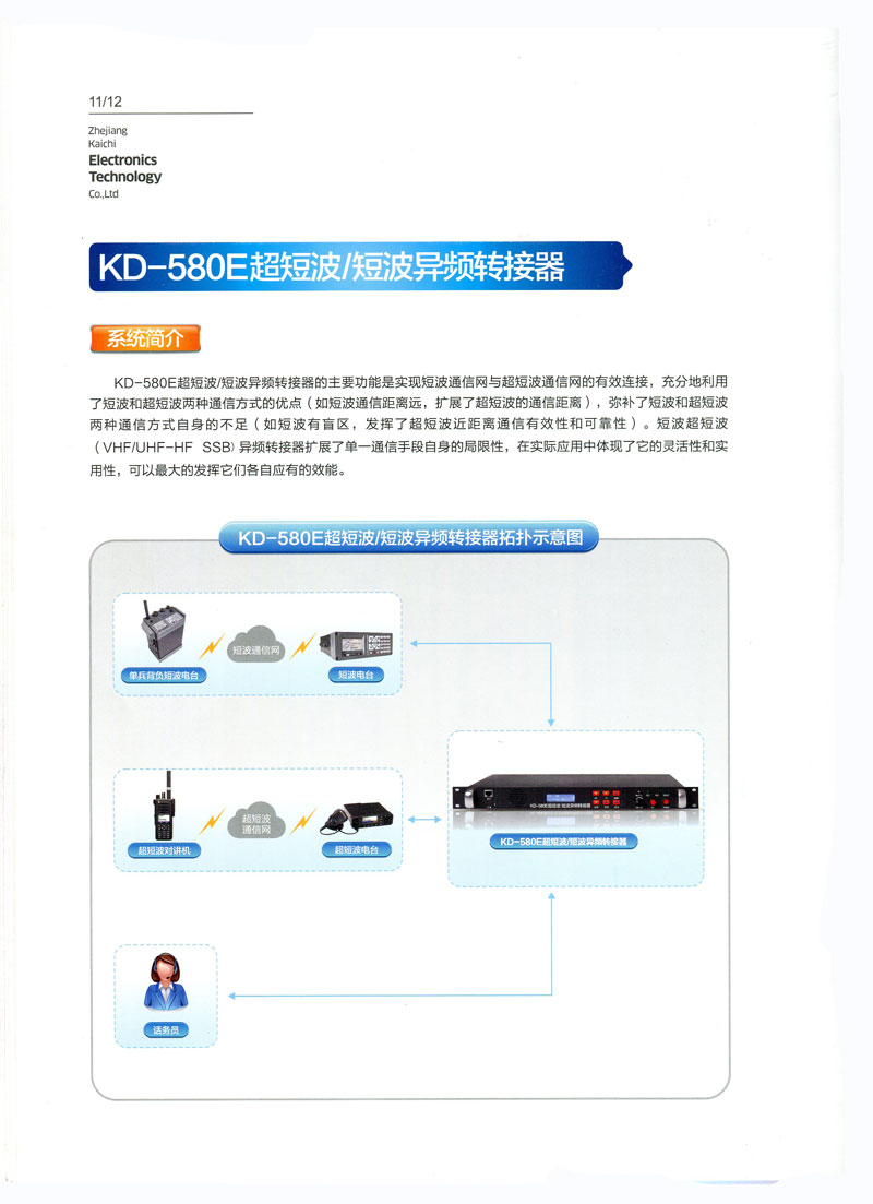 KD-580E短波超短波异频转接器的主要功能是实现超短波通信网与短波通信网的有效连接。使超短波的移动用户(VHF/UHF手持机或车载台)可以和短波用户(HF 便携式短波、车载短波、固定台短波)进行直接通话。