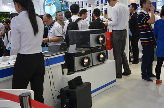 AVANZA以Speckle Free®激光显示技术为核心,相继推出了GreenOmni TM 和OmniSmart®两个系列,产品覆盖从5000-10000流明20多款激光工程投影机。在1A72的展位上,AVANZA展示了激光高亮解决方案吸引了大批观众及专业媒体围观。现场3台GreenOmni TM WU8,以3台叠加投射出高亮影像,获得了观众的热烈追捧。