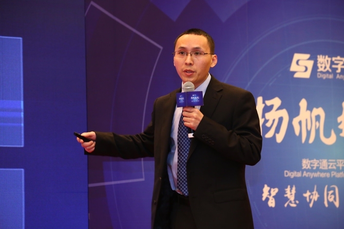 数字通产品总监吴道全先生对数字通云平台(DAP),以及基于该平台研发的DAP智慧政务、DAP智慧教育、DAP智慧办公系列产品做了介绍。吴总监重点介绍了数字通云平台诞生的原因、设计理念和要实现的目标。之后,详细的了平台孵化出的三款产品的亮点和应用场景。