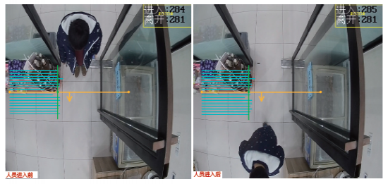 客流统计是该机最主要的功能,通过其内置的flash存储客流数据,无需外加SD卡,在默认15分钟的更新频率下,存储可达40年以上。测试员将前端镜头垂直安装进行客流统计测试,该机检测线绘制可以360°旋转,进出口方向可以自由转换,数据统计周期最大可设置60分钟,先进行单人通过检测,通过前数据显示进入284人,当测试员快速通过检测线,数据瞬间跳至285人,离开数据前后不变,检测迅速准确;测试员多次检测发现单人通过未出现误差,接下来测试多人同时通过,在同样角度、同样照度环境下,四人同时快速通过检测线,统计数据从进入285人变化至289人,反应同样灵敏,数据检测准确。该机客流量统计数据可靠、准确,可启用OSD叠加,设置文字备注,数据实时上传,支持全天24小时不间歇检测,值得一提的是该机客流量统计结果可以输出日、周、月、年报表以便分析,同时客流统计功能可与本机其他智能分析功能(如越界侦测、区域入侵报警等)同时进行,互不冲突影响,功能十分强大。