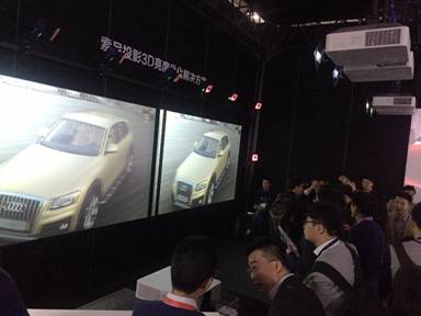 此外,本展区应用创新型的3D增强现实显示技术,投影画面可实时跟随观展者的视角移动进行变化。此类投影解决方案十分适合汽车展厅、工业设计等领域用户使用。