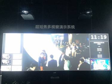 索尼多视窗演示系统的问世,极大地满足了用户进行多屏演示的需求,突破了单一屏幕中切换不同种类画面的局限。本展区系统由两台VPL-F635HZ 6000流明激光光源投影机,配合超短焦镜头进行拼接投放。超短焦镜头的应用,可有效节省安装空间,同时光线不会影响演讲者的眼睛,非常适合演播室、指挥中心等领域用户使用。本次多视窗演示系统全新引入体感手势控制系统,操作更为便捷直观。