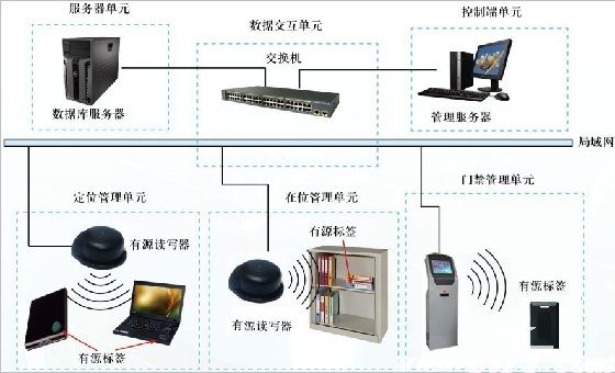 系统前端信息采集设备种类多样,包括射频识别系统的网络读写器、唤醒器、有源电子标签,涉密信息载体上的电子标签进入控制区域后发出的信号通过射频识别传输到网络读写器,网络读写器的信息通过有线传输到监控中心。