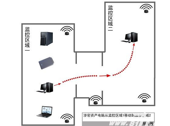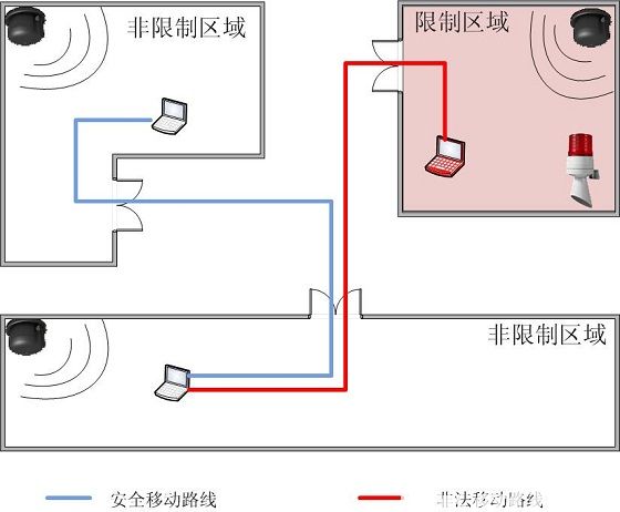 可实现在受监控区域内,可对涉密信息载体、涉密人员进行定位,查看位置移动情况,并可对监控区域内的涉密信息载体、涉密人员实现移动路线跟踪,实现对涉密信息载体、涉密人员的精确轨迹跟踪,保证保密工作处于受控状态。