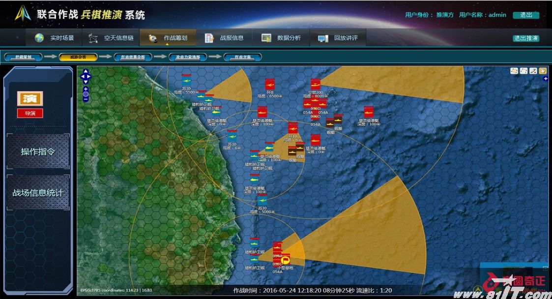 系统采用公司成熟的WEBGIS技术和规则设计技术,将陆、海、空、天、电等不同军兵种的作战行动融合在“一张地图”上,充分体现各军兵种不同作战力量作战行动之间的相互作用关系与效果,解决了航图、海图无法展现地面作战行动和大比例尺地图无法展现空中、海上作战行动的矛盾。真正实现了联合作战指挥员在一个态势图下,筹划、调控各军兵种作战任务和作战行动。