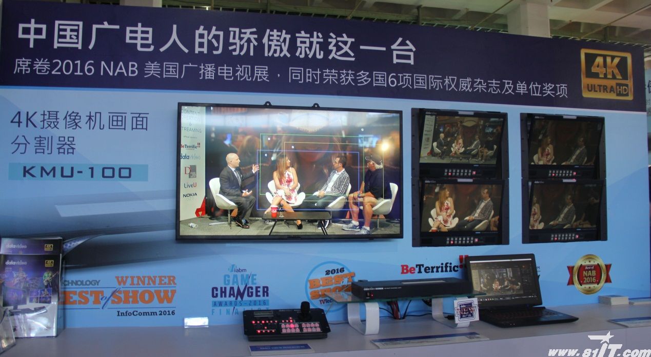 此次洋铭数码展出的明星产品当属,国际大奖拿到手软的4k摄像机画面分割器KMU-100。林鸿铭董事长自豪的介绍:“我们这个创新产品今年一口气荣获了6项国际权威媒体和展会奖项。 1个4K输入视频就可以获得4个高清输出画面。整套系统只需要1台4K摄像机+l台4K画面分割器KMUIOO+l台控制器RMC- 180K,就这么简单!”