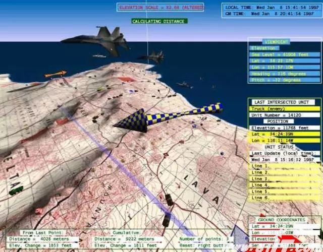 由美国海军实验室资助开发的“龙”系统已在演习与实战中得到检验与应用。该系统可以在72小时内,提供90×90km范围的数字地形数据(Digital Terrain Elevation Data,DTED)5级(1m)特征数据和图像特征。在作战之前,能够快速将复杂战场态势可视化,使指挥员及其参谋人员能灵活使用两维或者动态三维显示系统更有效地制定任务计划和演练,评估行动路线,保持态势的认知。同时还能够使士兵“看清”道路、树木、山地和水路等。该系统可以在工作台或头盔显示器等平台上运行,提供以地图为中心或以用户为中心的导航方式,以操纵杆提供人-机交互,操作和携带都非常方便。该系统曾经参与“猎人勇士”(Hunter WarriorAWE3)和“联合反雷”(Joint Counter Mine)等先进概念战术演习。