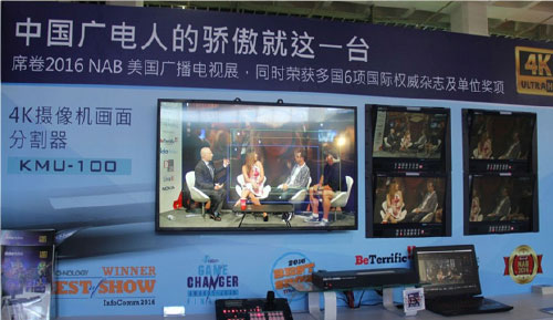 此次洋铭数码展出的明星产品当属,国际大奖拿到手软的4k摄像机画面分割器KMU-100。林鸿铭董事长自豪的介绍:“我们这个创新产品今年一口气荣获了6项国际权威媒体和展会奖项。 1个4K输入视频就可以获得4个高清输出画面。整套系统只需要1台4K摄像机+l台4K画面分割器KMUIOO+l台控制器RMC- 180K,就这么简单!”