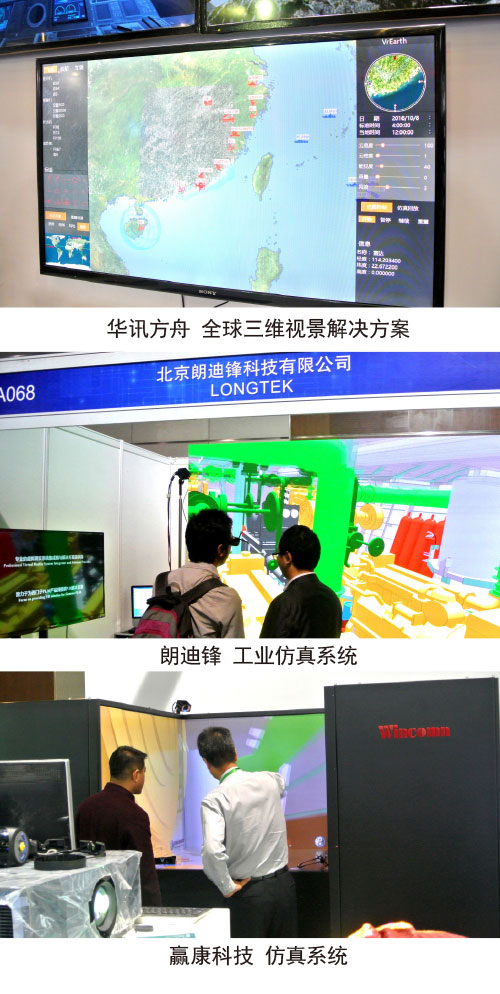 本届世界仿真展为世界各国、军地双方提供军民融合仿真科学技术的双向转移、产品应用、技术交流和项目对接的平台,有100多家高新技术企业纷纷布局仿真领域和国家创新战略,具有鲜明的科技产业创新性,促进科技成果转化发展的亮点:北京中航双兴科技有限公司、中国载人航天工程、北京辰星创图科技有限公司、北京仿真中心、南京华讯、方舟通信设备有限公司、航天科工仿真技术有限责任公司、北京华如科技股份有限公司展示了军事训练仿真、虚拟训练平台、火灾模拟VR小屋、沉浸式交互系统设计与集成、航天军工大数据可视化系统、汽车仿真驾驶舱、大型客机飞行模拟综合程序训练器、基于VR的登月系统、城市动态交通仿真平台、数字头颅的解剖与虚拟仿真等一大批高科技仿真和虚拟现实装备。