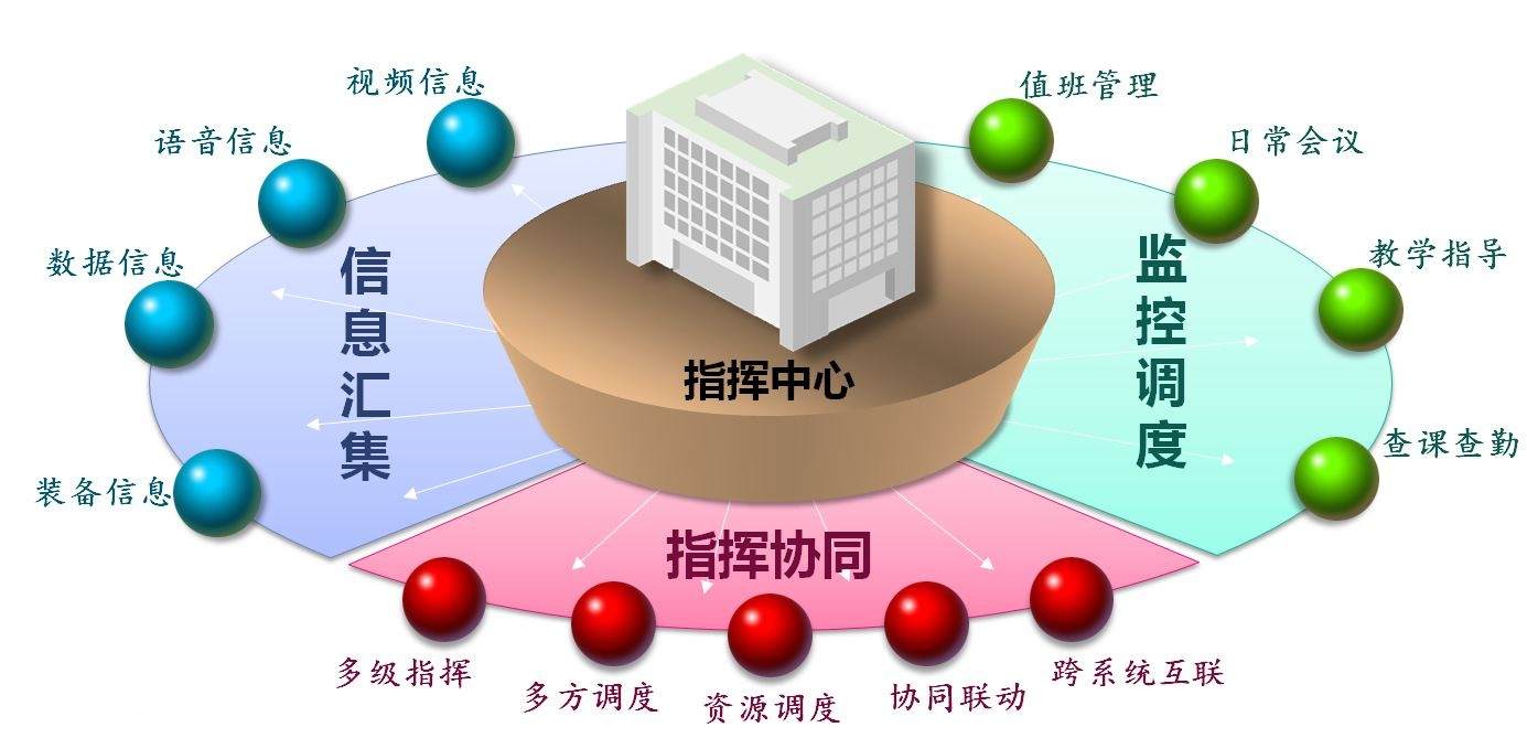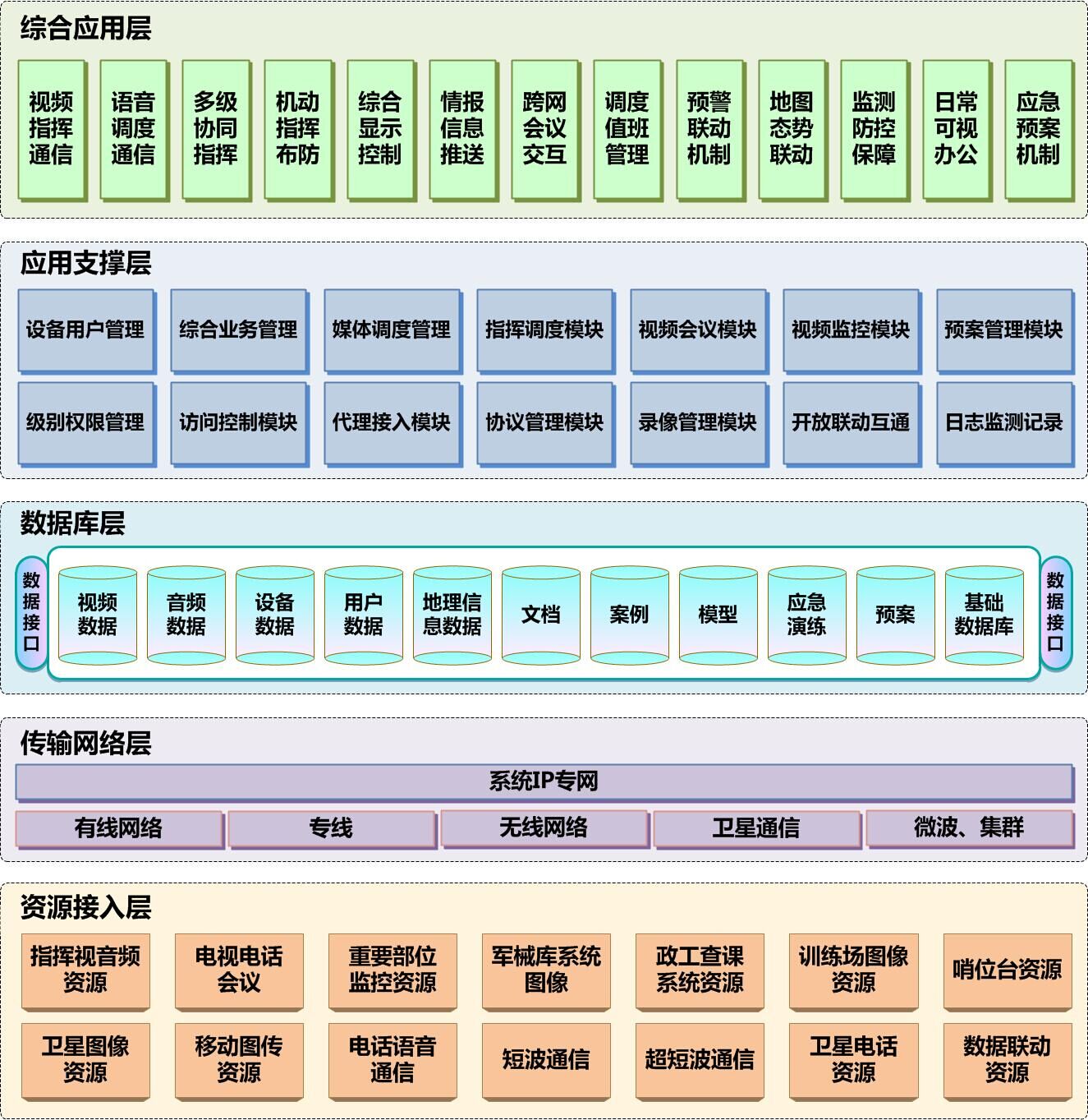 上述三大核心职能将具体贯穿到各级指挥中心的综合信息化管理和可视化指挥通信等各类业务功能内。一体化指挥管理信息平台在为各级指挥中心提供核心可视化管理和指挥功能的同时,还将作为重要的信息交互接口和标准化输出接口,为作战态势、地理信息、训练管理、应急预案等提供统一编组统一标准的图像语音信息资源。
